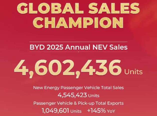 The post BYD kekal pengeluar kenderaan paling laris China, jual 4,602,436 unit pada 2025 — eksport naik 151% appeared first on Paul Tan’s Automotive News.