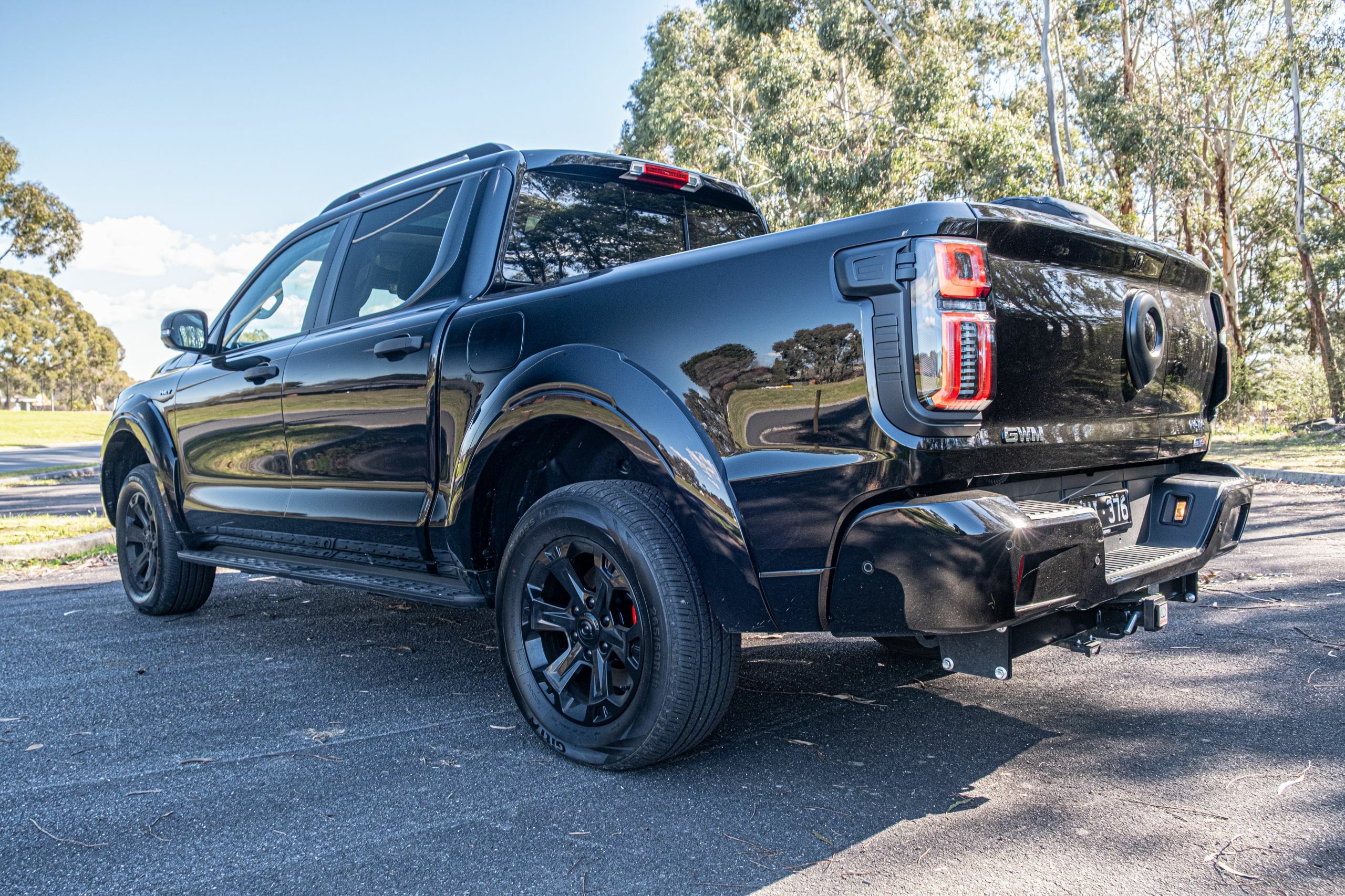 GWM’s local solution for adding a spare tire also leaves a lot to be desired. As the battery pack takes up the space under the bed where the tire would usually sit, it’s been forced to mount the wheel vertically in the bed and cover it in a cheap-looking plastic cover. More on this later.