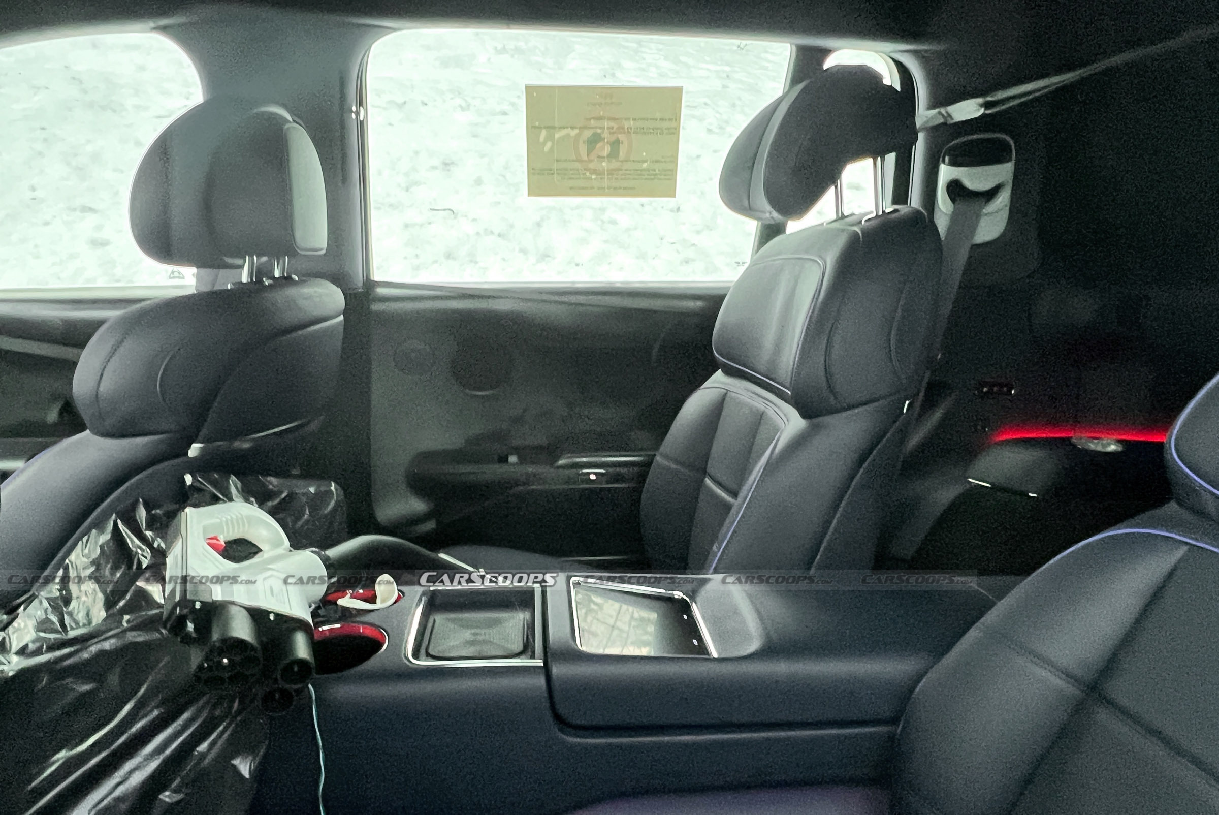 While the exterior looks a little dull, the interior aims to be a luxurious oasis. Previous spy photos have shown an elegant second-row with captain’s chairs separated by a large center console. The latter appears to house a wireless smartphone charger as well as an integrated tablet.