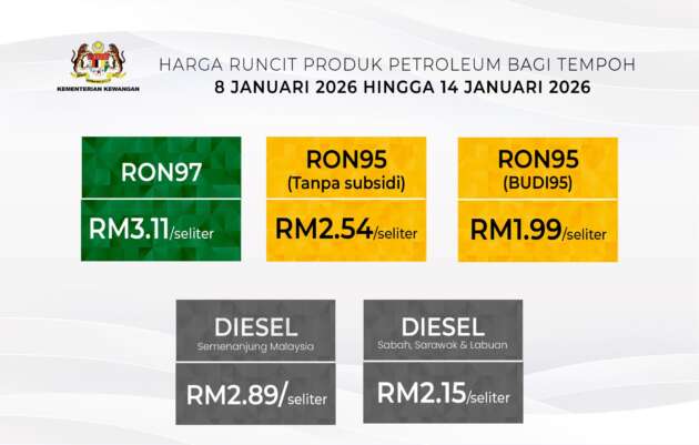 The post Harga minyak 8-14 Jan – RON97, RON95 tanpa subsidi dan diesel Semenanjung turun antara 2-5 sen seliter appeared first on Paul Tan’s Automotive News.