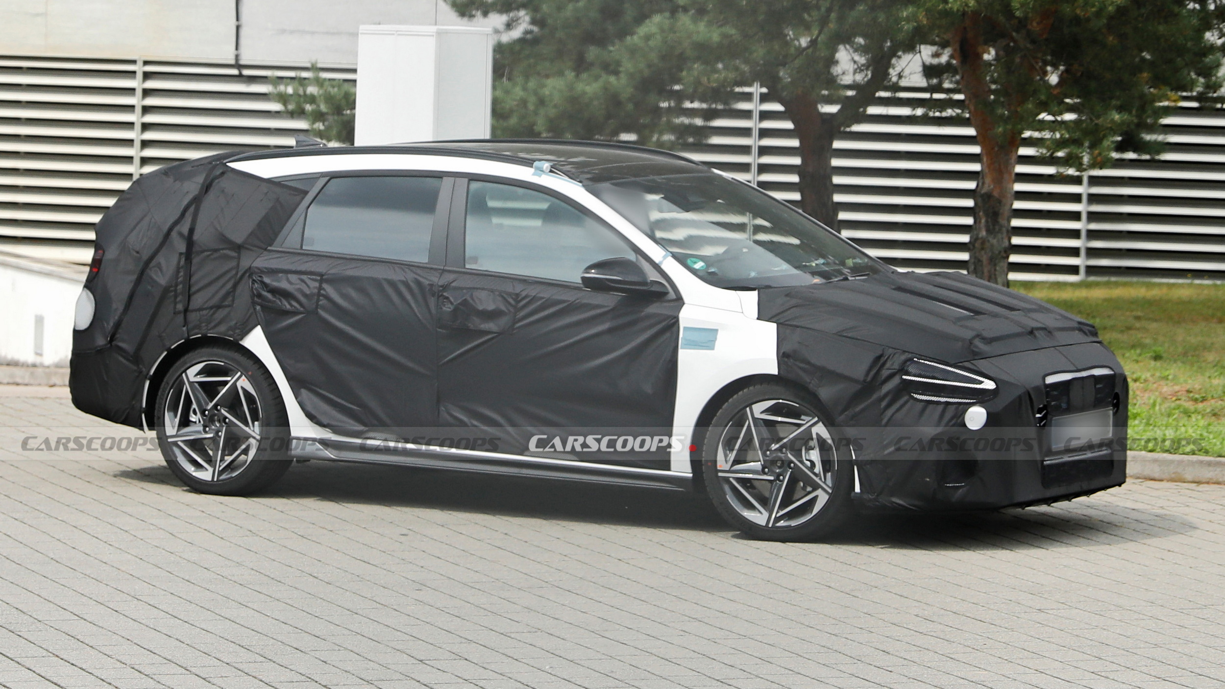 The bodywork of the prototype was under heavy camouflage, but it is clear that it is based on the Hyundai i30 Tourer with the optional N Line package. The full-LED headlights and taillights appear to be carried over from the first facelift, while the 18-inch alloy wheels are the same that appeared in the second facelift. The bumpers appear nearly identical to the current model, though subtle tweaks could be hiding beneath the coverings.