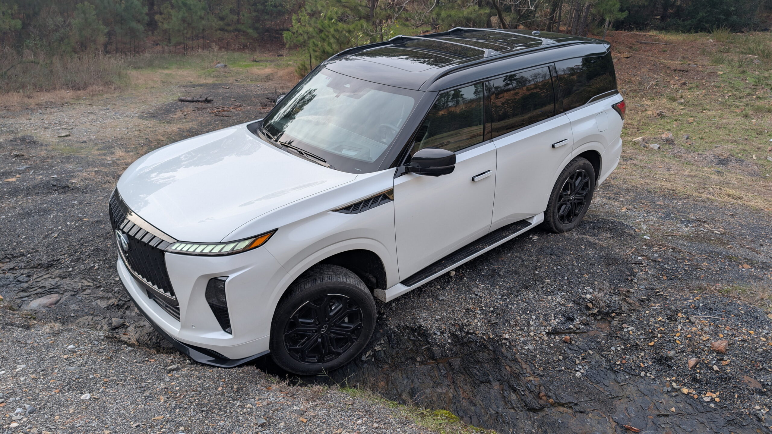 Our test car featured a two-tone paint job with black on the upper half and stark white on the bottom. These shades drove home the darker accents even more and certainly didn’t detract from the vibe the QX80 is aiming for. Buyers have the option of picking it up in a handful of other colors, though, including Mineral Black, Grand Blue, or Dynamic Metal.