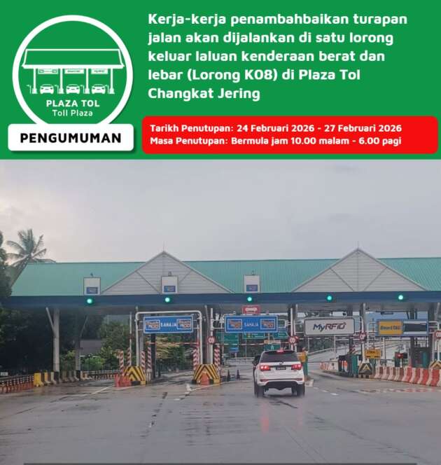 The post Kerja turapan jalan di lorong keluar kenderaan berat di Plaza Tol Changkat Jering, 24-27 Feb, 10 malam-6 pagi appeared first on Paul Tan’s Automotive News.