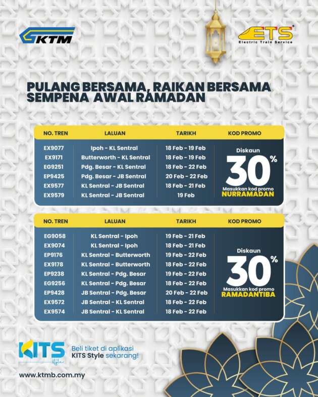 The post KTM ETS beri 30% diskaun tiket sempena awal Ramadan – untuk perjalanan hingga 22 Feb 2026 appeared first on Paul Tan’s Automotive News.