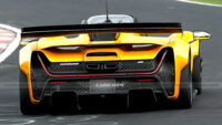 Continuing to the rear, the prototype has been equipped with a sizable wing and new vents above the taillights. We can also get a glimpse of a revised exhaust system that features circular tips inside a hexagonal surround. The aggressive diffuser appears to carryover from the standard model, although that might change for production.