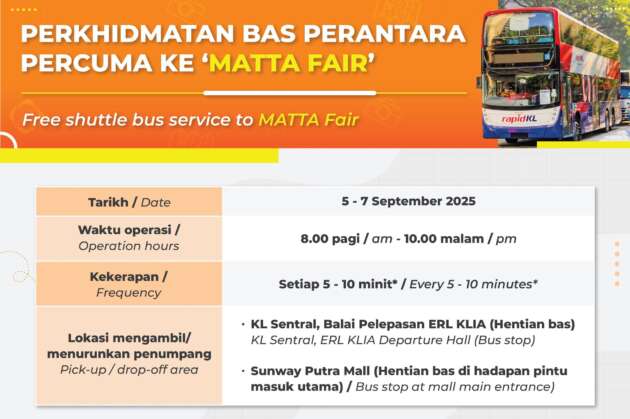 The post MATTA Fair 2025, 5-7 Sept di MITEC – bas perantara Rapid KL percuma dari KL Sentral, Sunway Putra Mall appeared first on Paul Tan’s Automotive News.