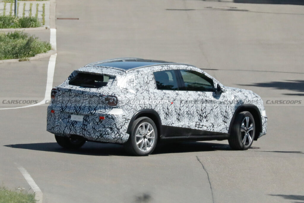 The interior appears to be camouflaged, but it will likely follow in the footsteps of the CLA. This means we can expect a minimalist design focused on screens. The latter should include a 10.25-inch digital instrument cluster, a 14-inch infotainment system, and a 14-inch front passenger display. They’ll run the new Mercedes-Benz Operating System and have artificial intelligence from both Microsoft and Google.