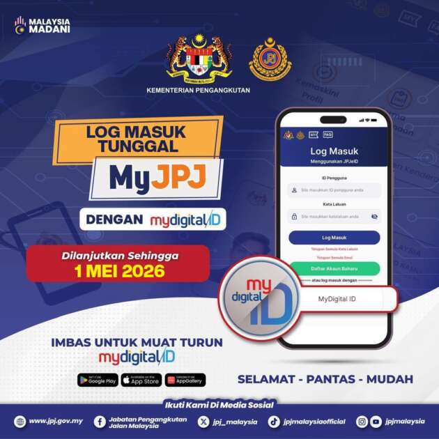 The post MyDigital ID sebagai kaedah log masuk tunggal ke aplikasi MyJPJ dilanjutkan hingga 1 Mei 2026 appeared first on Paul Tan’s Automotive News.