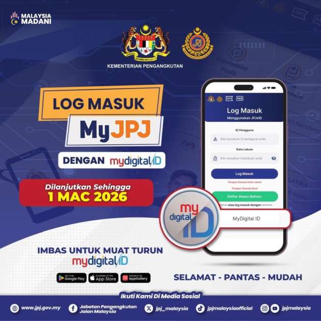 The post MyDigital ID sebagai kaedah log masuk tunggal ke aplikasi MyJPJ mulai 1 Mac selepas sebulan ditangguh appeared first on Paul Tan’s Automotive News.