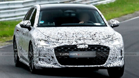 Our spy photographers caught a lightly camouflaged RS3 Sportback prototype doing hot laps at the Nurburgring. The model could be easily mistaken for a regular RS3, but a closer inspection reveals a few interesting aero upgrades.