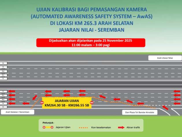 The post Ujian kalibrasi kamera AWAS di KM265.3 Nilai-Seremban arah selatan pada 25 Nov, 11 malam-3 pagi appeared first on Paul Tan’s Automotive News.